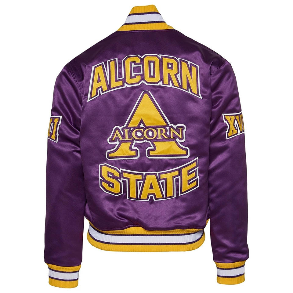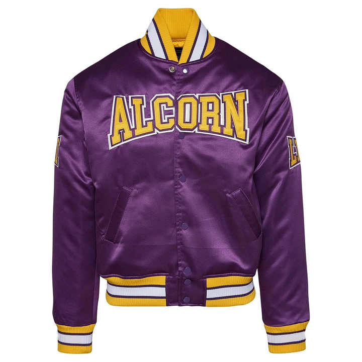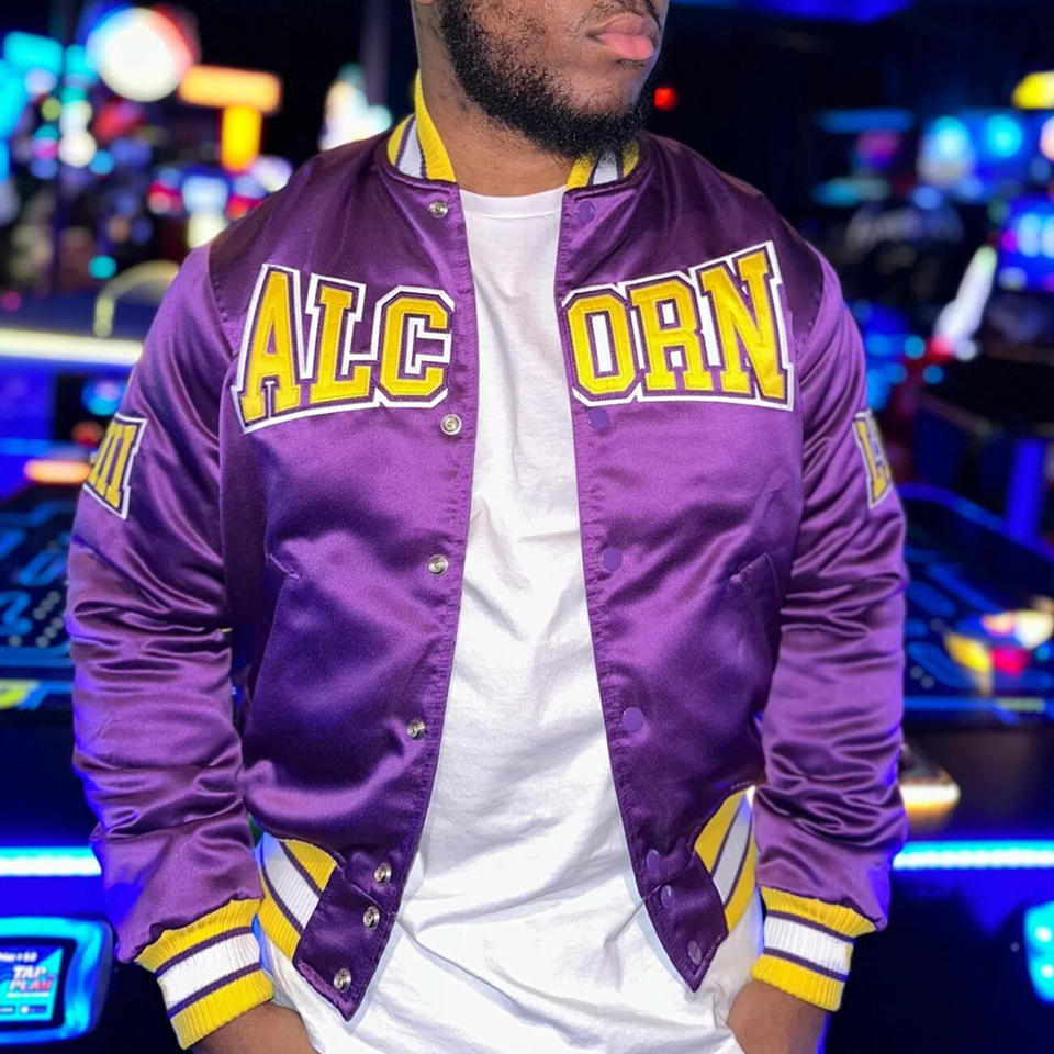 Veste en satin personnalisée Alcorn State University Veste de baseball en satin pour hommes Taille plus col montant veste d'université pour l'hiver