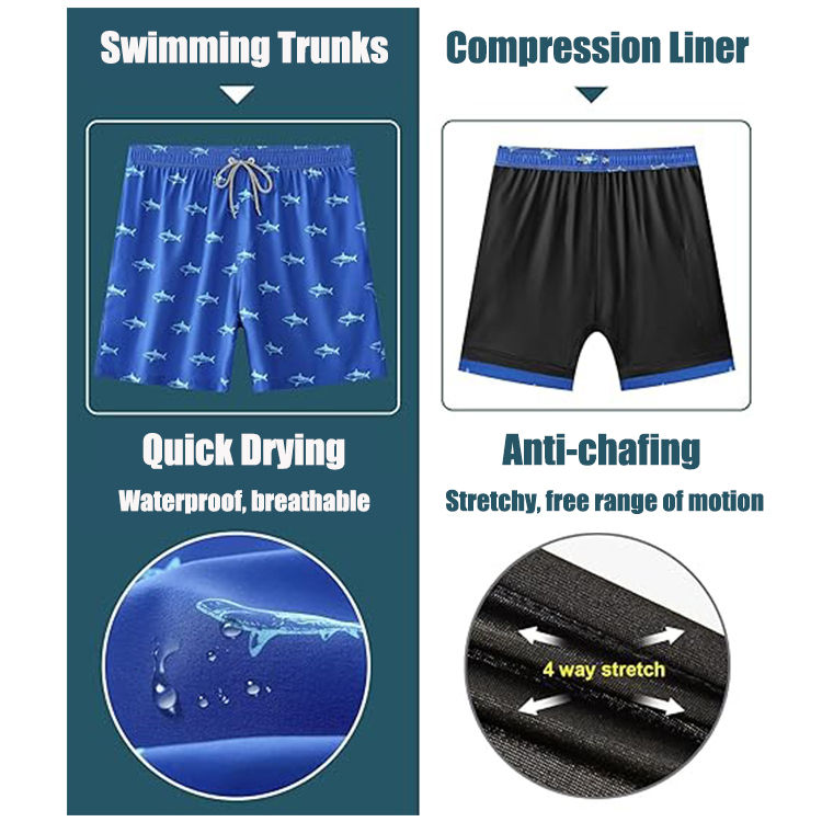 Shorts de bain anti-rides à séchage rapide pour hommes, vente en gros, shorts de surf, shorts de plage, boardshorts par sublimation, vêtements de natation pour hommes