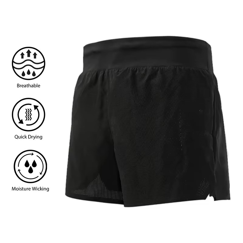 Short de course athlétique pour homme Polyester Spandex léger avec poches zippées Taille élastique Type taille moyenne Teint uni