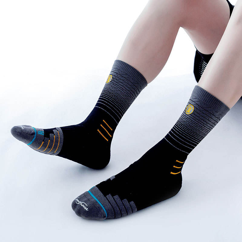 Chaussettes de sport décontractées en tricot antibactérien élasthanne/nylon/coton pour hommes avec logo sur le corps