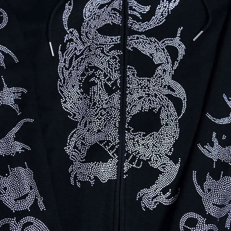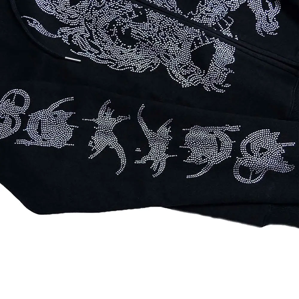 Men's Autumn Rhine Stones Hoodie Pullover Hoodies Wholesale New Streetwear Fashion Black Organic Cotton Hoody
