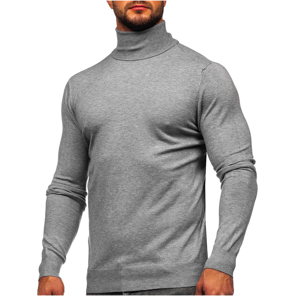 Sweat-shirt à col roulé pour homme, en tricot doublé, coupe classique, manches longues, anti-boulochage, chaud pour l'automne, polyester uni, décontracté, logo sur le devant