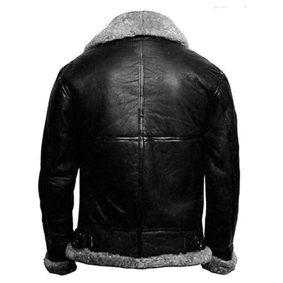 Men's Aviator Sheepskin Leather Jacket Fur Collar Adjustable Waist Belt Heavy Duty Zipper Classic Bomber Winter Warm Vintage