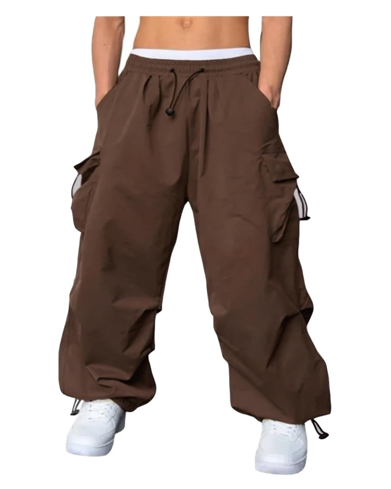 Men's Baggy Cargo Pants Casual Parachute Cargo Pants Loose Fit Hip Hop Pants Pockets cuff adjustable drawstring with 4 pockets