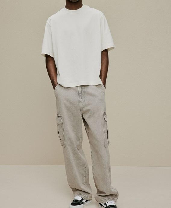 Baggy Cargo pour hommes Rigide Cotton Denim Beige Relaxed Jeans Qualité supérieure Jambe arrondie Cheville Stacked Baggy Pant @ Prix de gros