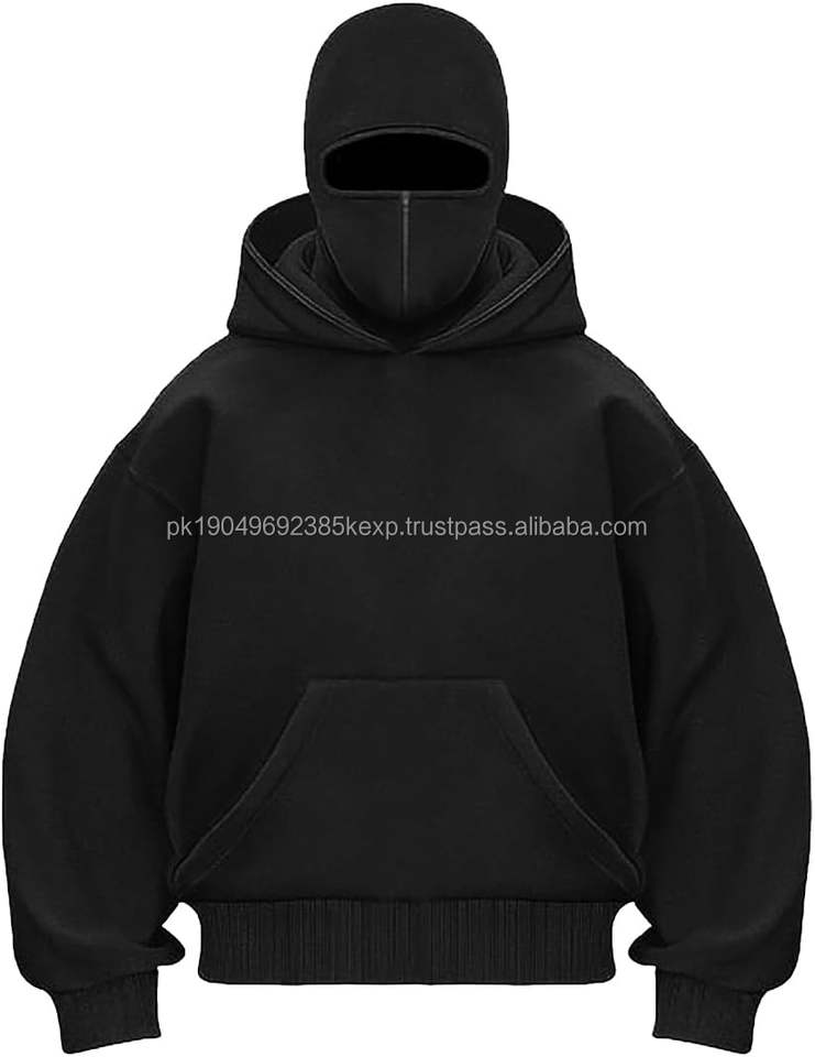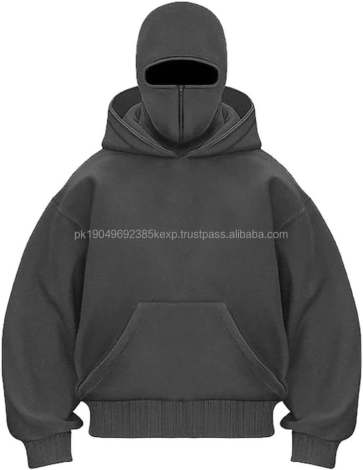 Men's Balaclava Hoodie Half Zipper Jacket Double Hooded Sweatshirt Wind Resistant Athletic Coat