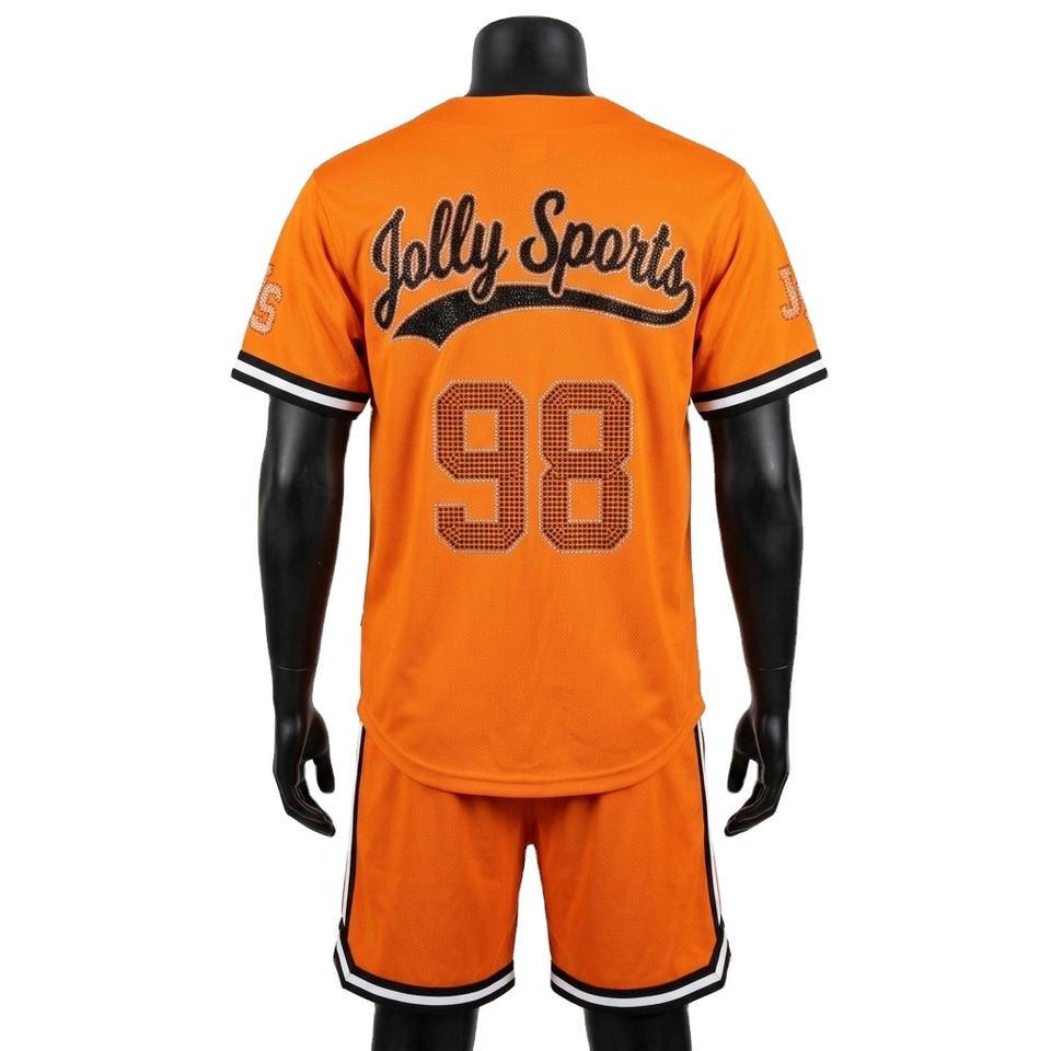Ensemble short de baseball pour homme en polyester respirant avec empiècements rayés orange et noir, uniforme en sergé, logo personnalisé