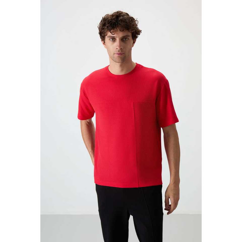 T-shirt basique pour homme, coupe ample, rouge, en tissu gaufré interlock texturé, 100% coton, style 88380