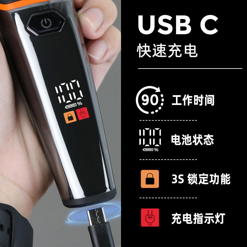 Tondeuse à barbe pour homme, type C, rechargeable, avec écran LED, peigne et base