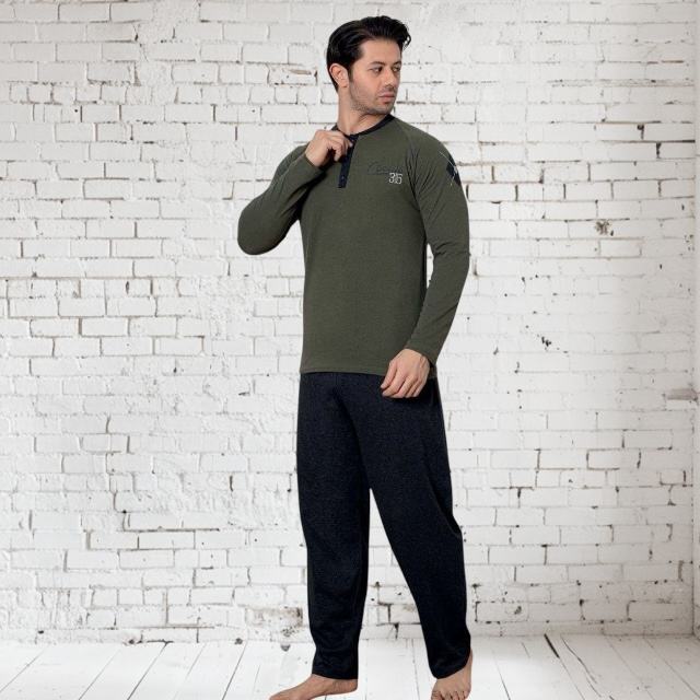 Pyjama confortable pour homme, vêtements de détente, grande taille, ensemble de pyjama doux, manches longues, respirant, mélange de coton, tricot élégant pour homme
