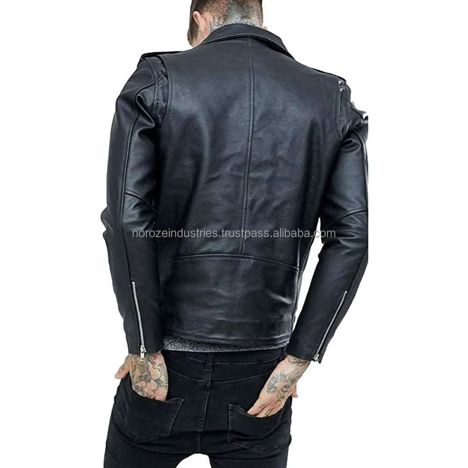 Veste en cuir noir véritable pour homme, style motard, motocycliste, rocker, rétro, en cuir de vache