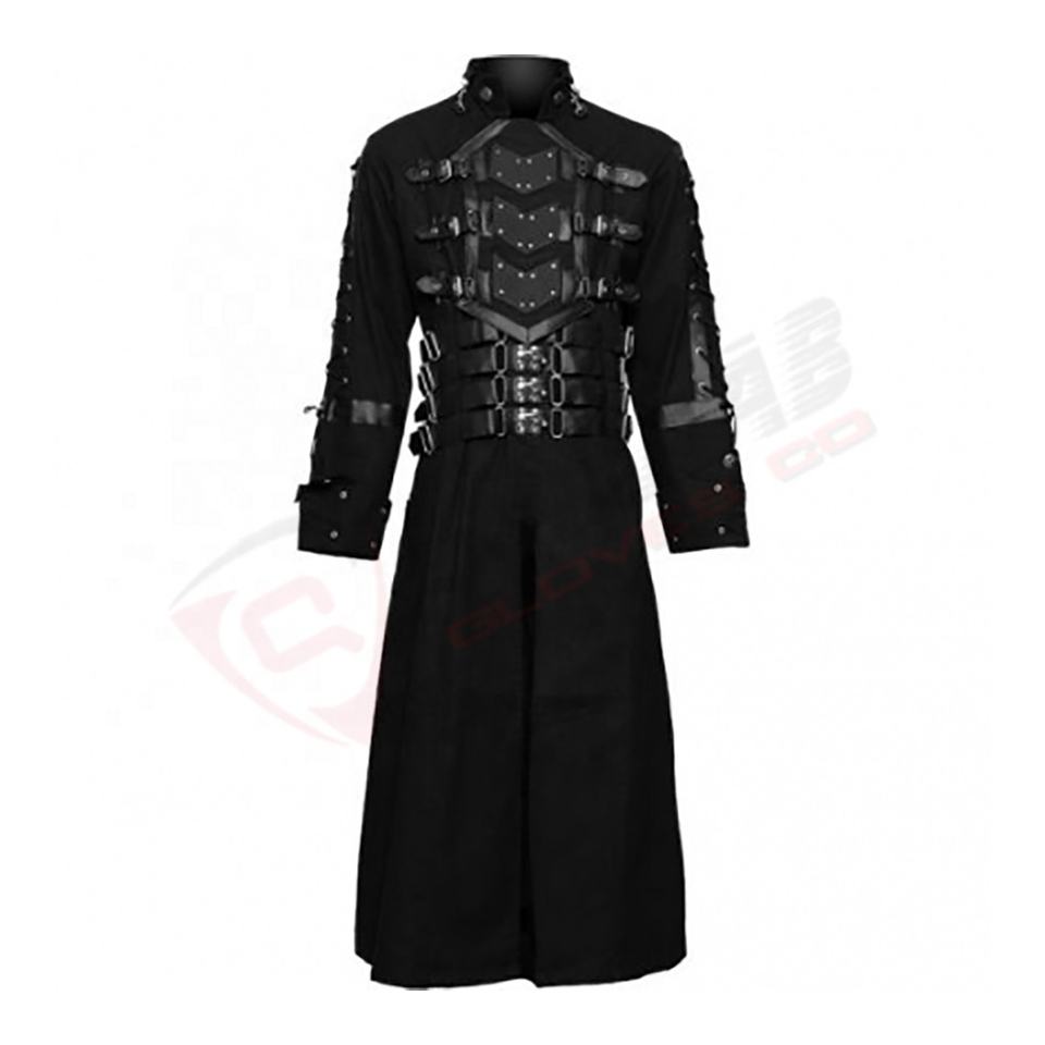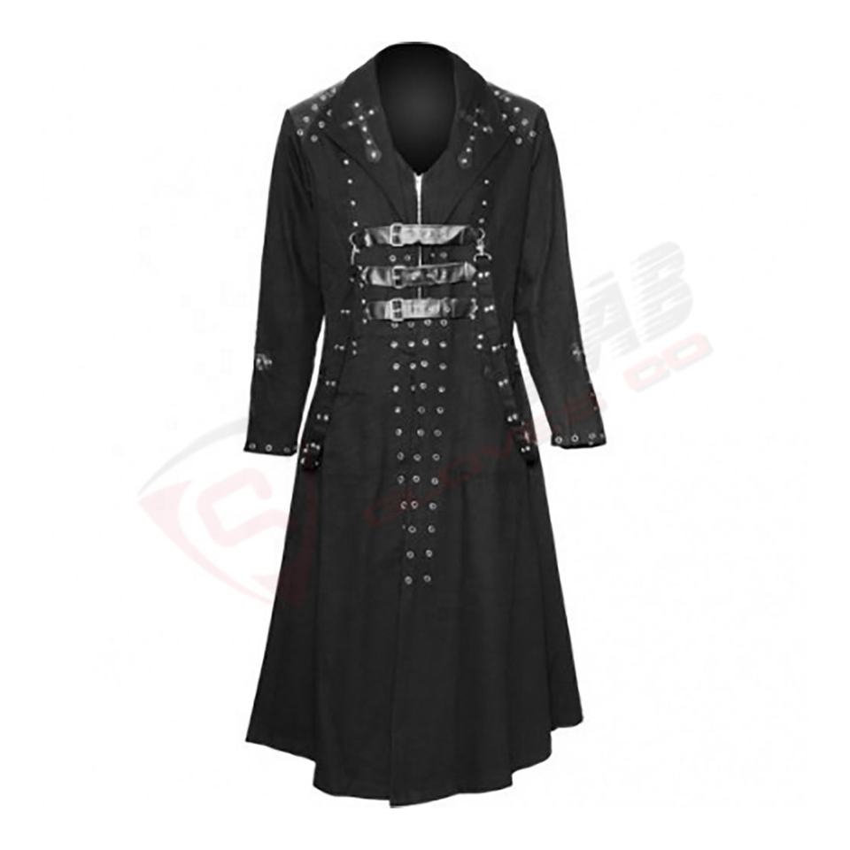 Manteau noir gothique pour homme avec coque imperméable en PU, design long à fermeture éclair, décorations - Doublure en lin polyester