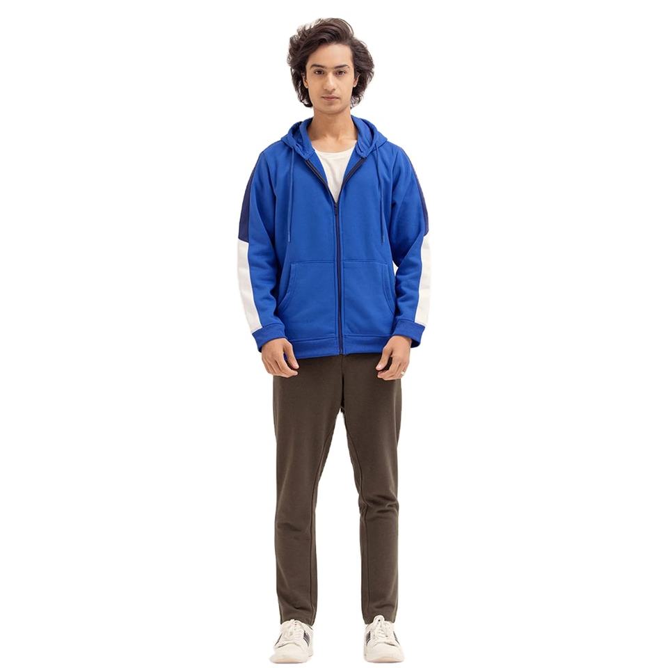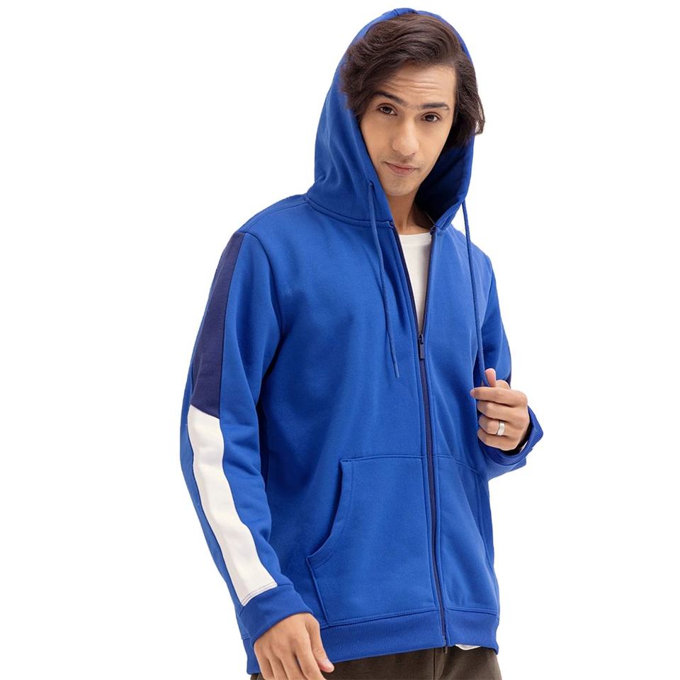Sweat à capuche couleur bleue pour homme Colorblock Zipper Cotton Fleece Formal Pocket Winter Sweatshirt