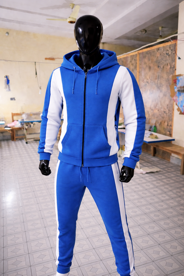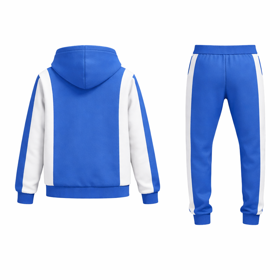 Men’s Blue White Tracksuit Set Zip Up Hoodie & Jogger Pants Gym Sportswear Casual Fitness Outfit Athletic Training Suit