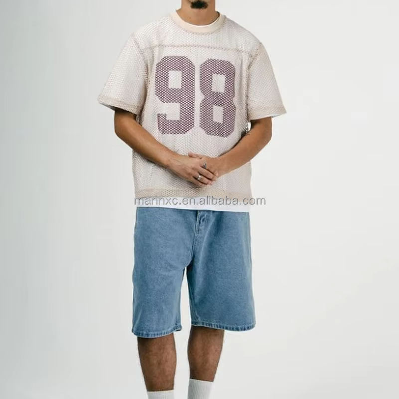 T-shirt Boxy pour hommes T-shirt surdimensionné en tricot de polyester pour le football, le basket-ball et le baseball en maille T-shirt noir pour hommes
