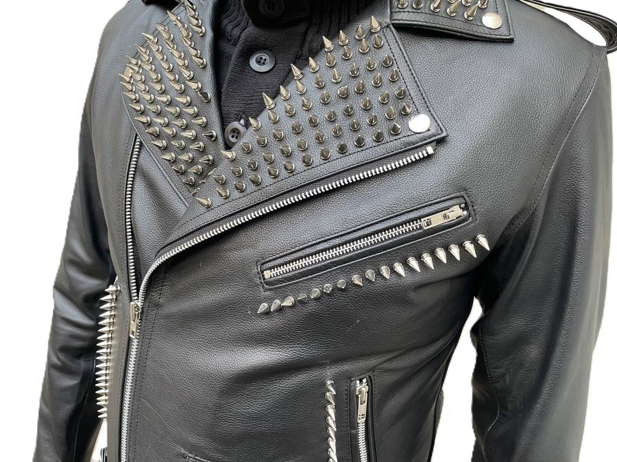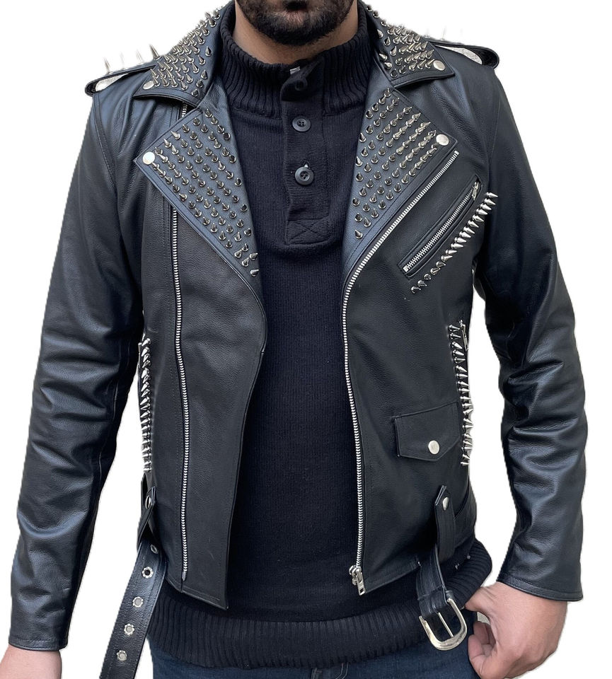 Veste en cuir cloutée à pointes argentées Brando pour hommes, style club gothique punk steampunk, veste noire de haute qualité pour motard OEM