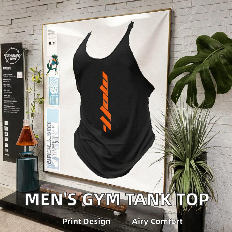 Débardeur de sport respirant imprimé à col rond pour homme, idéal pour la musculation, le fitness et l'entraînement