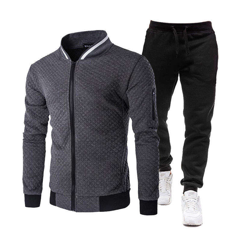 Ensemble de vêtements de sport respirant pour homme Survêtement Deux pièces Veste à manches longues et pantalon Vêtements de fitness décontractés
