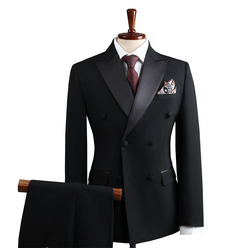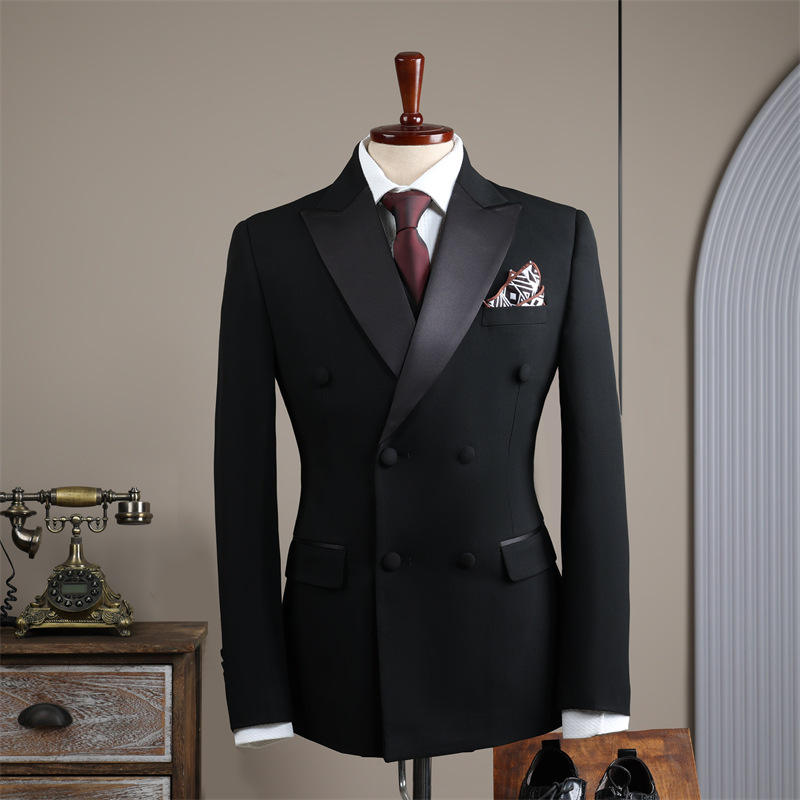 Costume de Mariage Formel Homme Haut de Gamme Britannique Trois Pièces Double Boutonnage pour Adulte, En Laine Peignée, Fermeture Éclair Plate, Costume d'Affaires