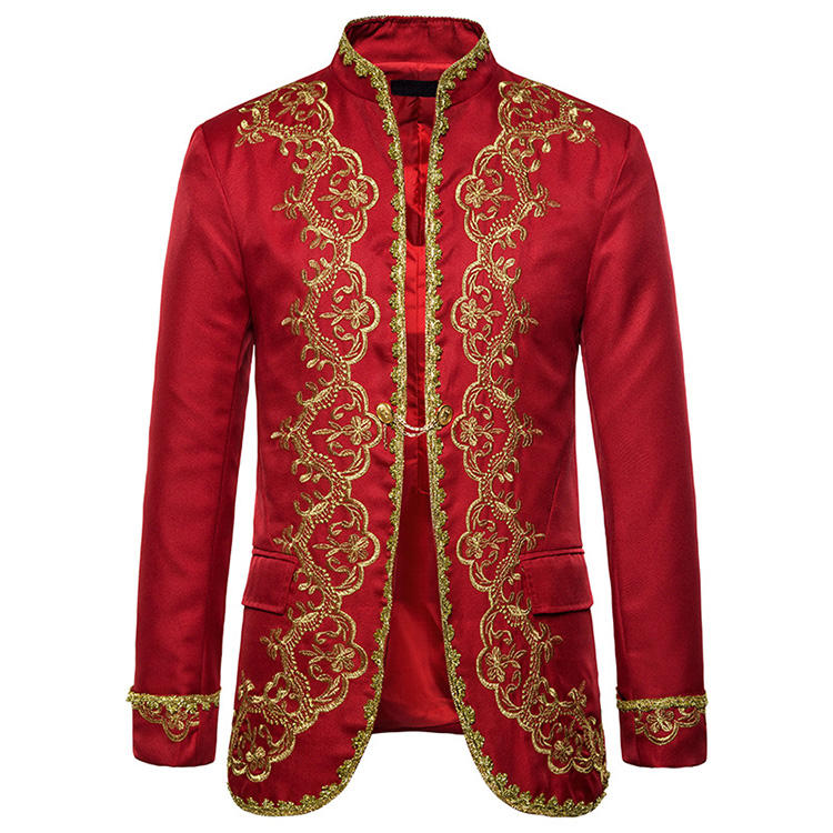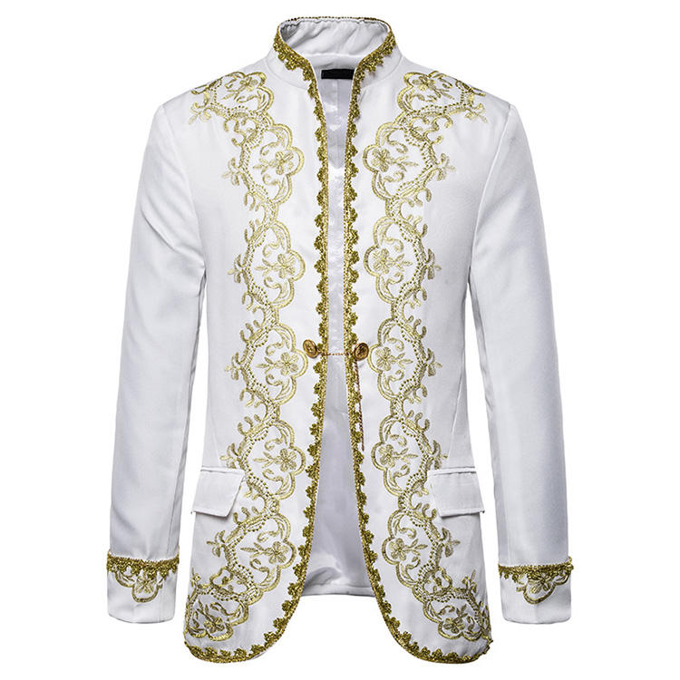 Robe de mariée brodée or de style britannique pour homme Robes de mariage col montant de luxe vintage