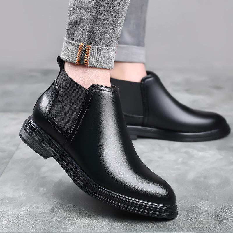 Bottes d'affaires formelles de style britannique pour hommes respirantes en cuir souple grand bout pointu bottes en cuir décontractées Design plat