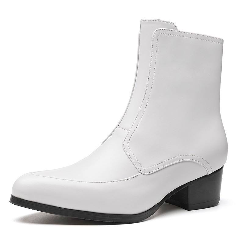Bottes montantes en cuir pour hommes, style britannique, à bout pointu, formelles, nouvelle collection hiver 2026, blanches, avec fermeture éclair, rehaussantes