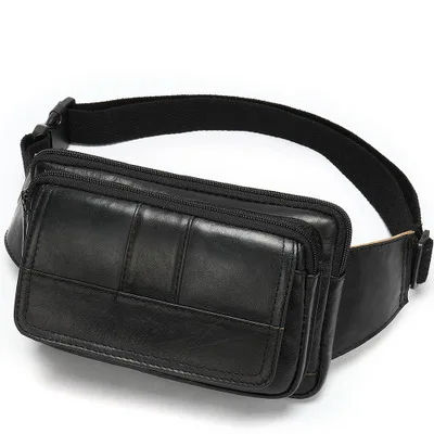 Men's Brown Cowhide Leather Waist Bag Multi-Function Genuine Leather Sling Chest Bag with Adjustable Strap