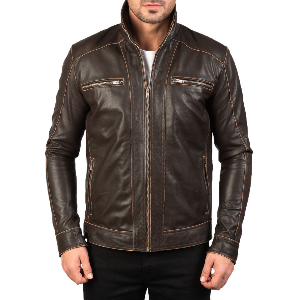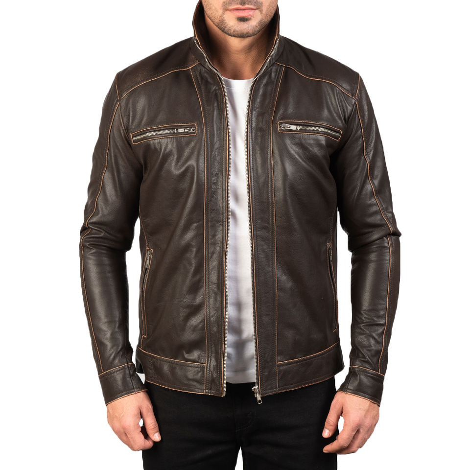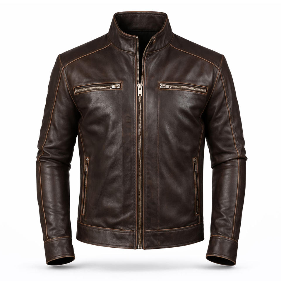Veste de moto en cuir marron pour homme, veste en cuir véritable style Cafe Racer, coupe slim, veste en cuir vintage pour motard