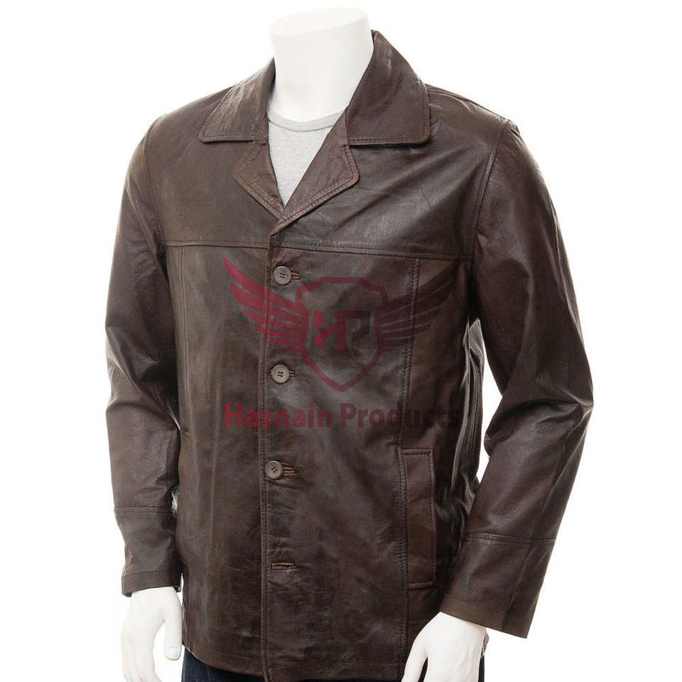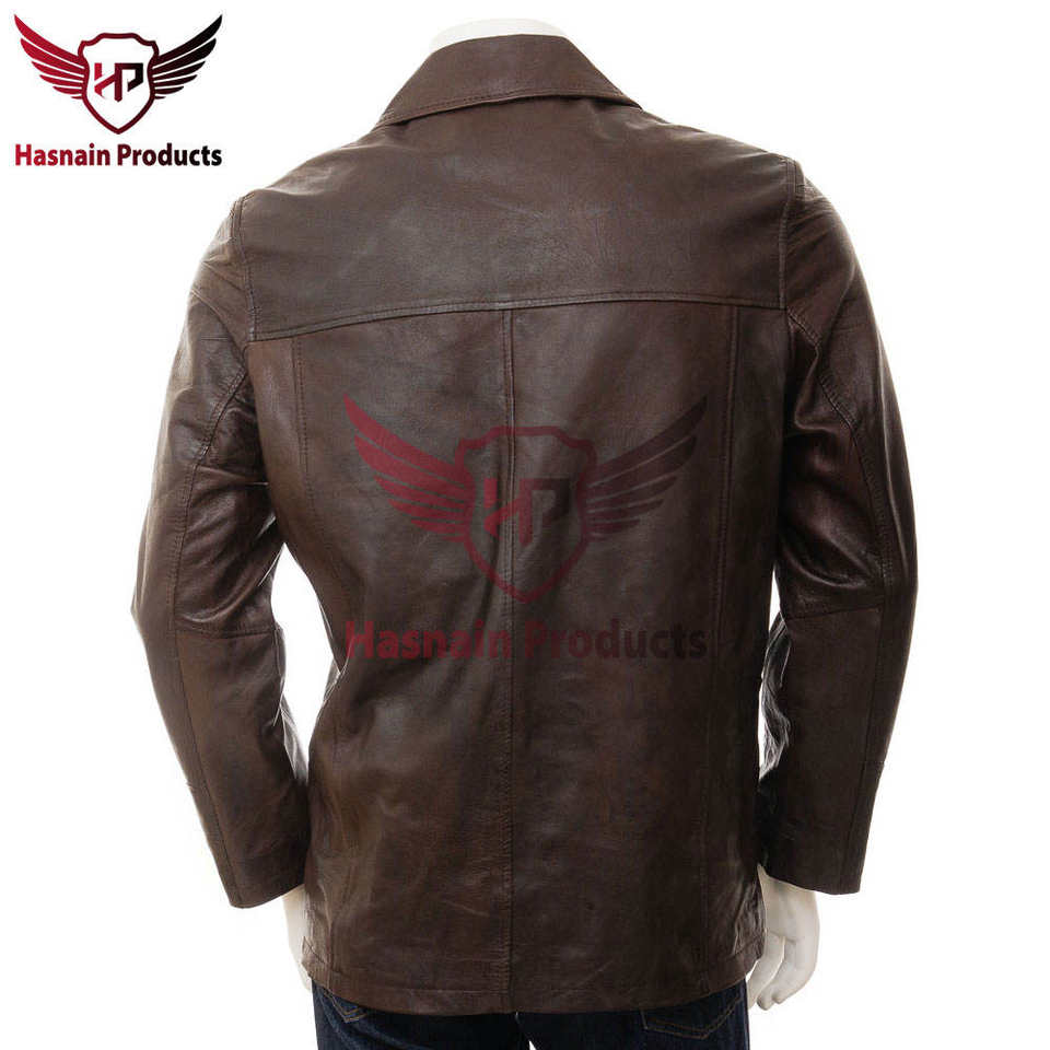 Veste Reefer en cuir marron pour homme-Logo personnalisé pour une élégance intemporelle et un style personnalisé