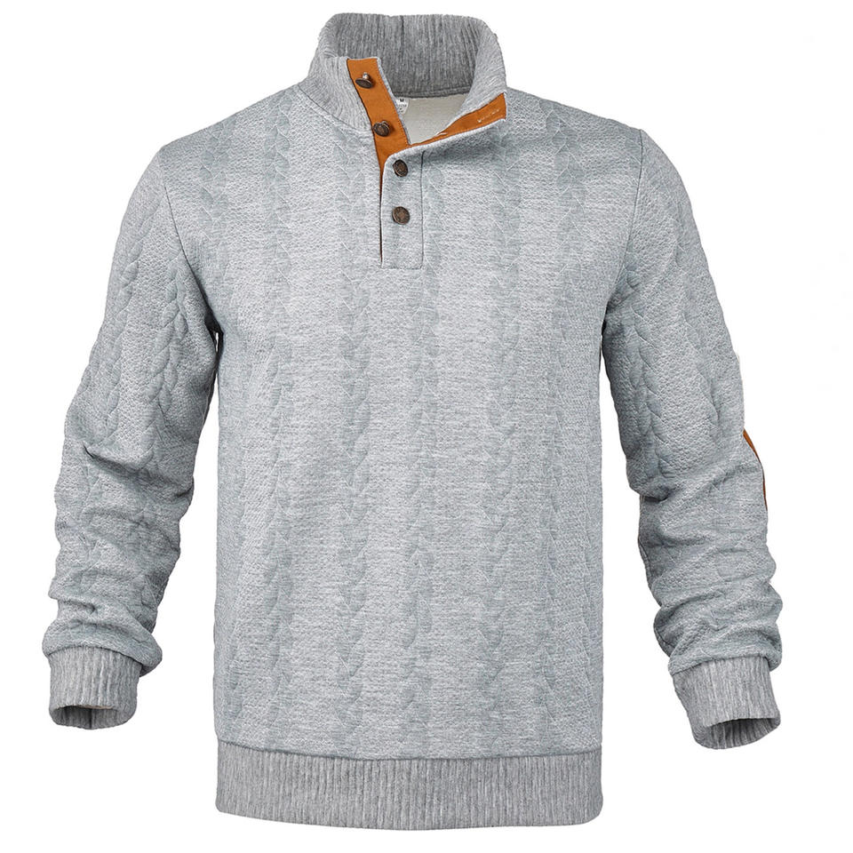 Sweat-shirt à col montant en tricot torsadé pour homme, manches longues, boutons sur le devant, gris avec accents orange, vêtement décontracté, automne-hiver, respirant