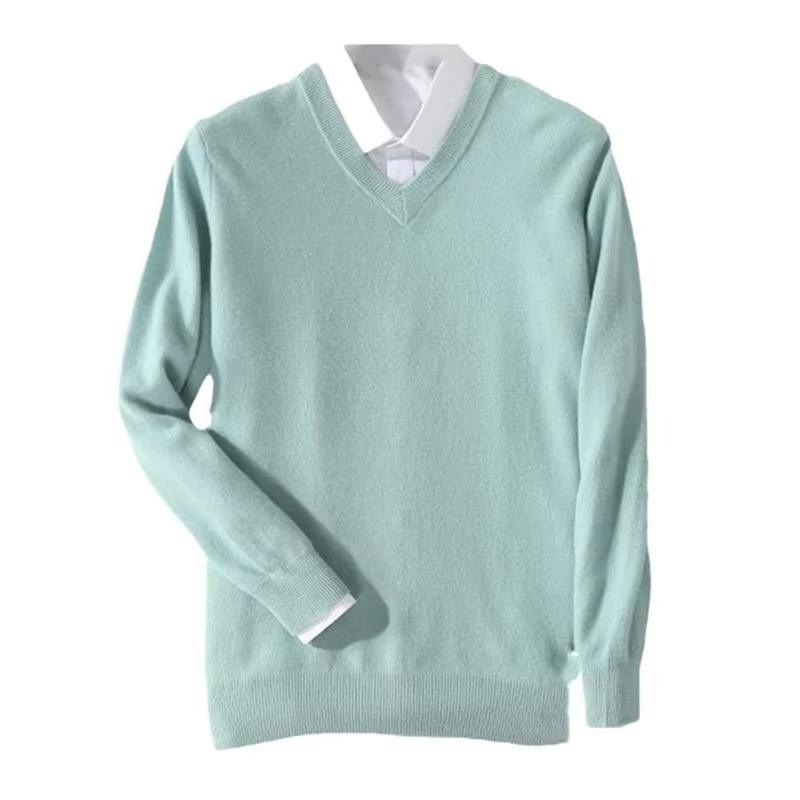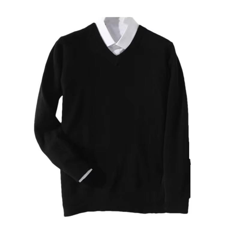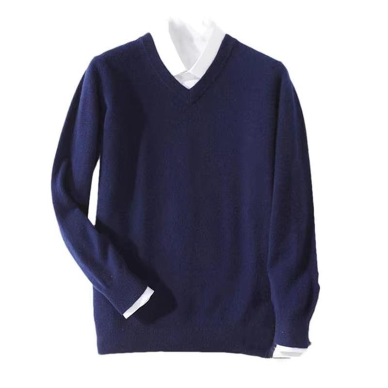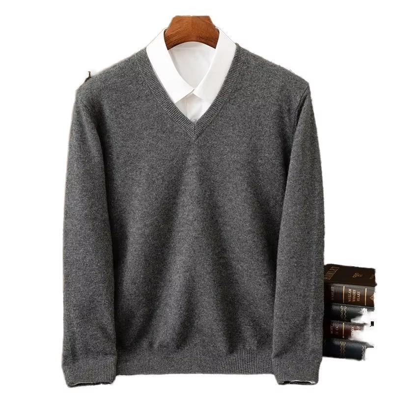 Pull en cachemire tricoté pour homme, respirant, anti-rides, séchage rapide, chaud pour l'automne et l'hiver, col en V classique, doublure en coton 300g