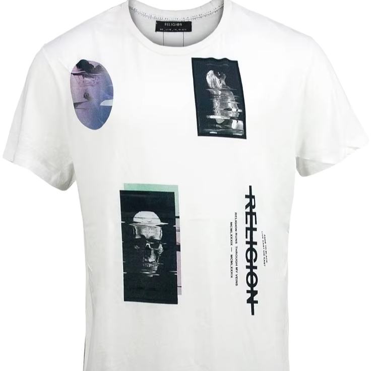 Men's Casual 100% Cotton Short Sleeve T-Shirt All-Over Printed with Front Silk Screen Printing Logo Knitted Full Printing Tshirt