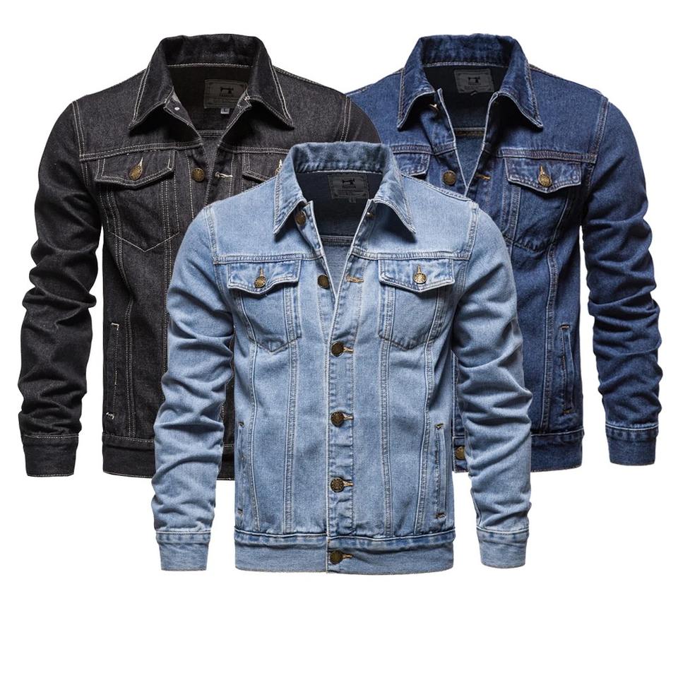 Veste bomber décontractée pour homme, veste en jean en coton pour le printemps et l'automne, col rabattu, manteaux en denim, idéal pour la mode masculine, vêtements d'extérieur