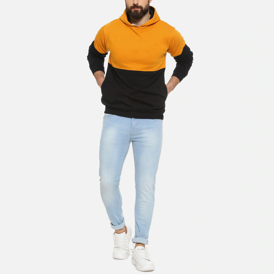 Men's Casual Colorblock Panel Streetwear Kangaroo Pockets Hoodies Customize Panel Colour 100% Cotton