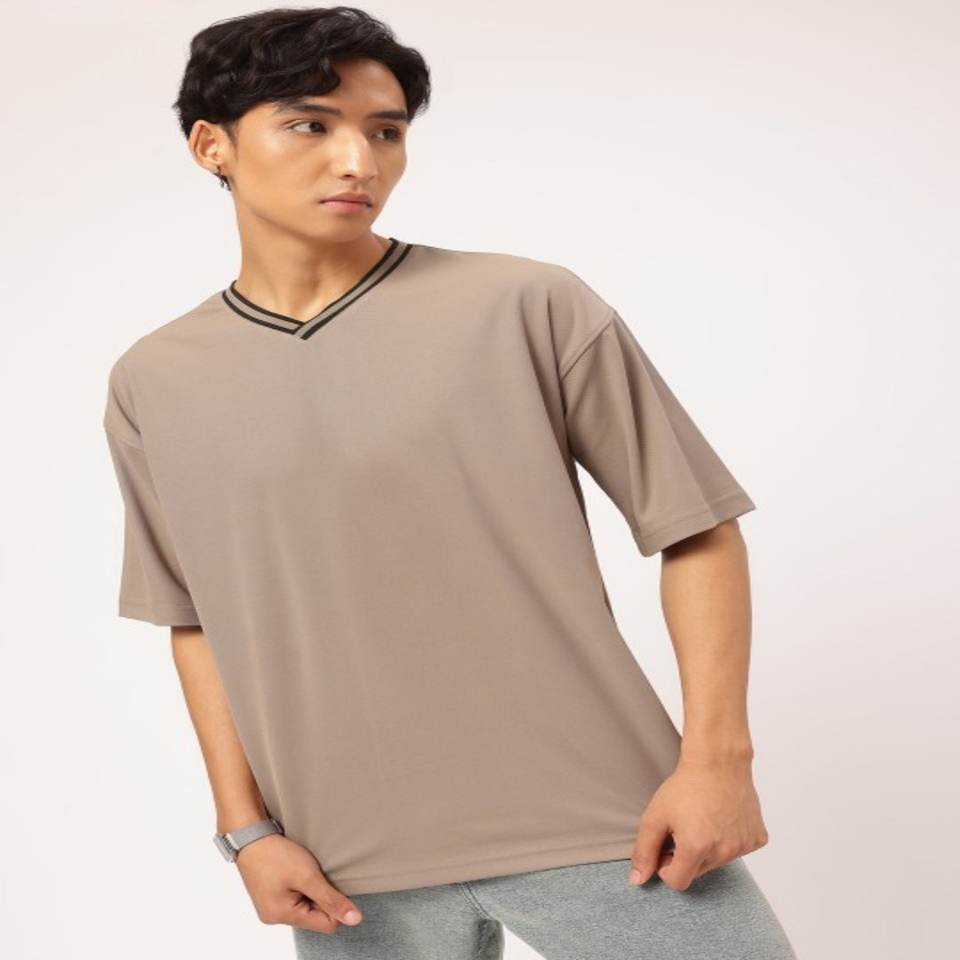Men's Casual Cotton T-Shirt V-Neck Drop-Shoulder Sleeves Regular Length Plus Size Jersey Fabric Printed Conversational Design