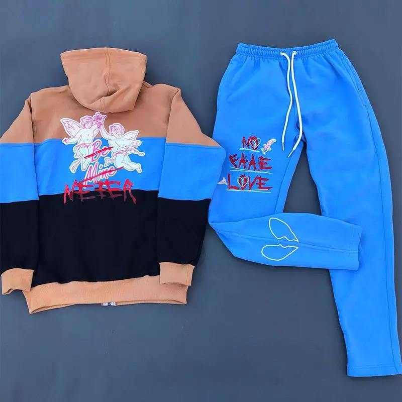 Men's Casual Hooded Tracksuit for Summer Sports Training Comfortable Printed Pants with Zipper Design for Outdoor Activities ODM