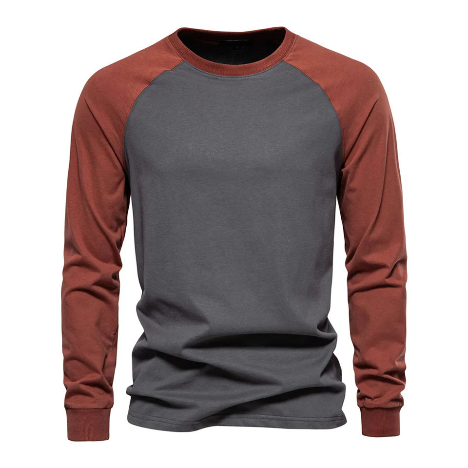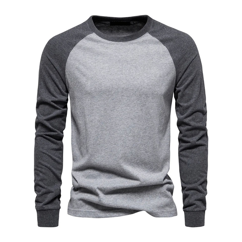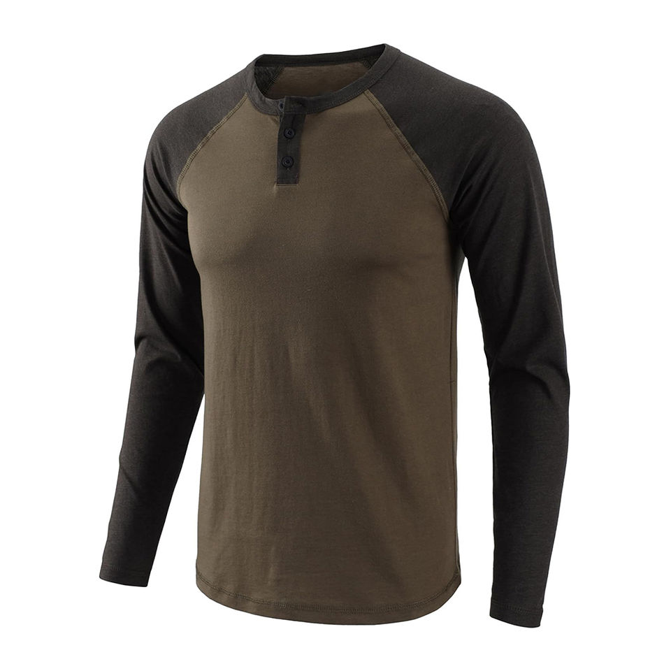 Chemise décontractée à manches longues raglan pour homme - T-shirt à manches longues en mélange de coton coupe ajustée avec patte de boutonnage à 3 boutons et couleur contrastante