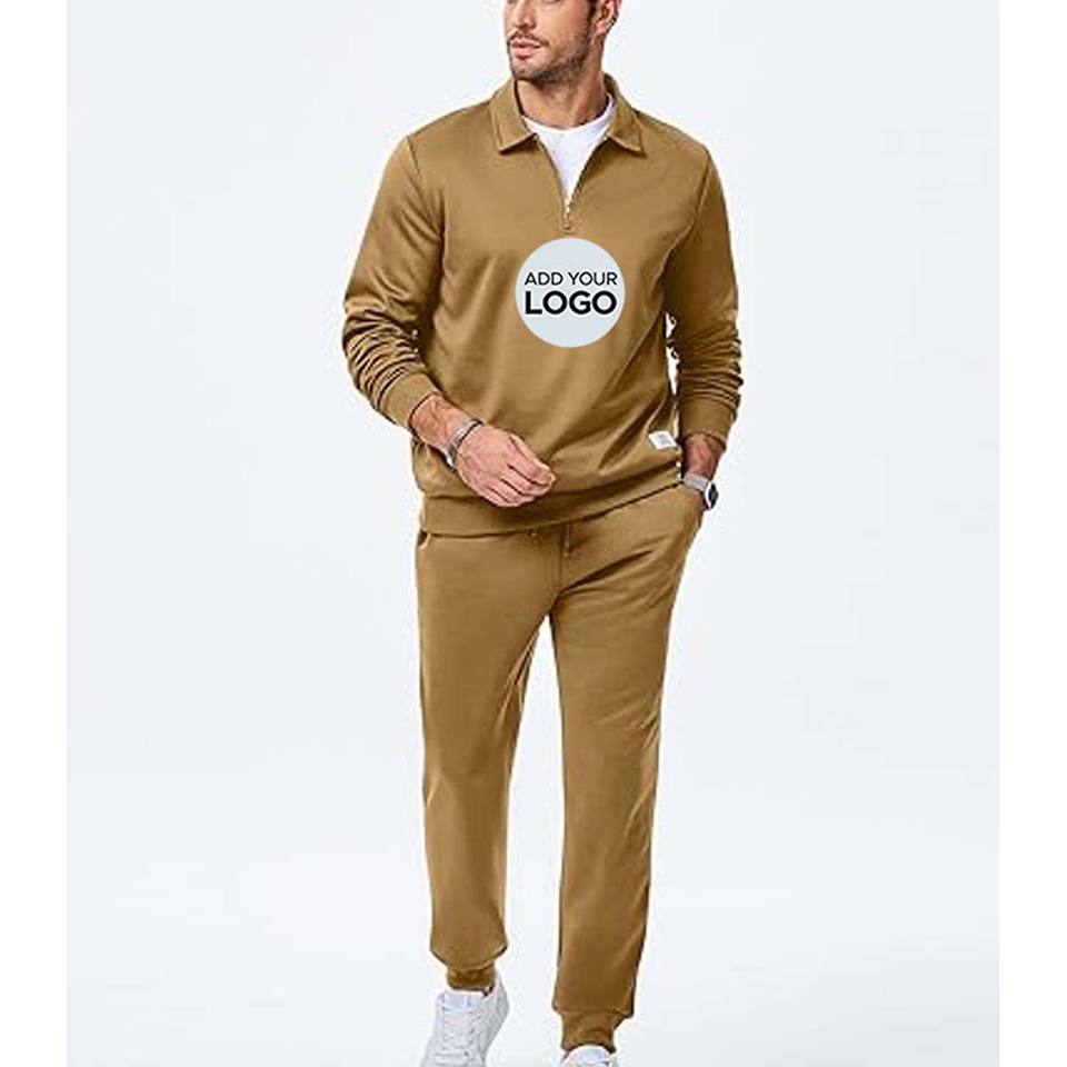 Men's Casual Solid Quarter-Zip Tracksuit 2-Piece Set Windproof Eco-Friendly Fleece Wide Leg Sweatpants Track suit