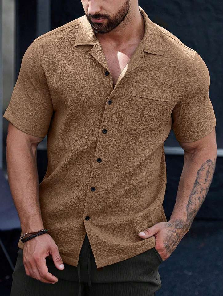 Men's Casual Sports Cardigan Top for Amazon Cross-Border For Temu for Shein Short Sleeve Shirt Plain Dyed Knitted Top for Summer