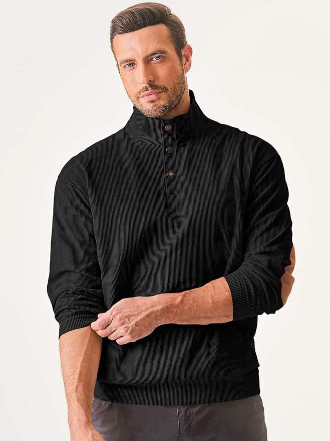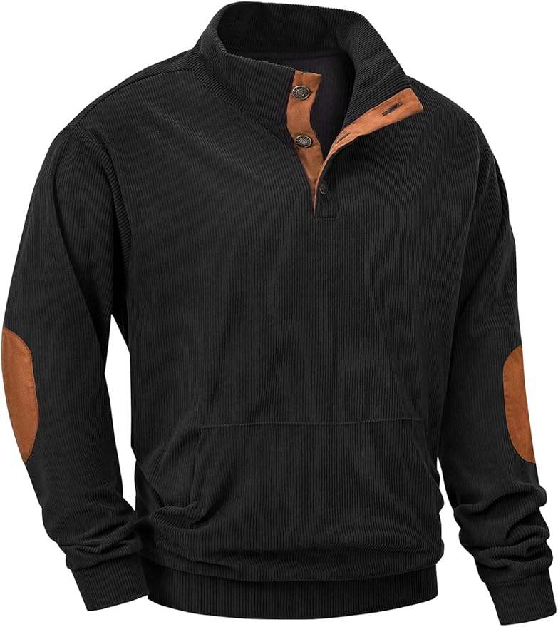 Sweat-shirt d'automne décontracté à motif délavé pour hommes, manches longues, velours côtelé, col montant, boutons, poches brodées en 3D