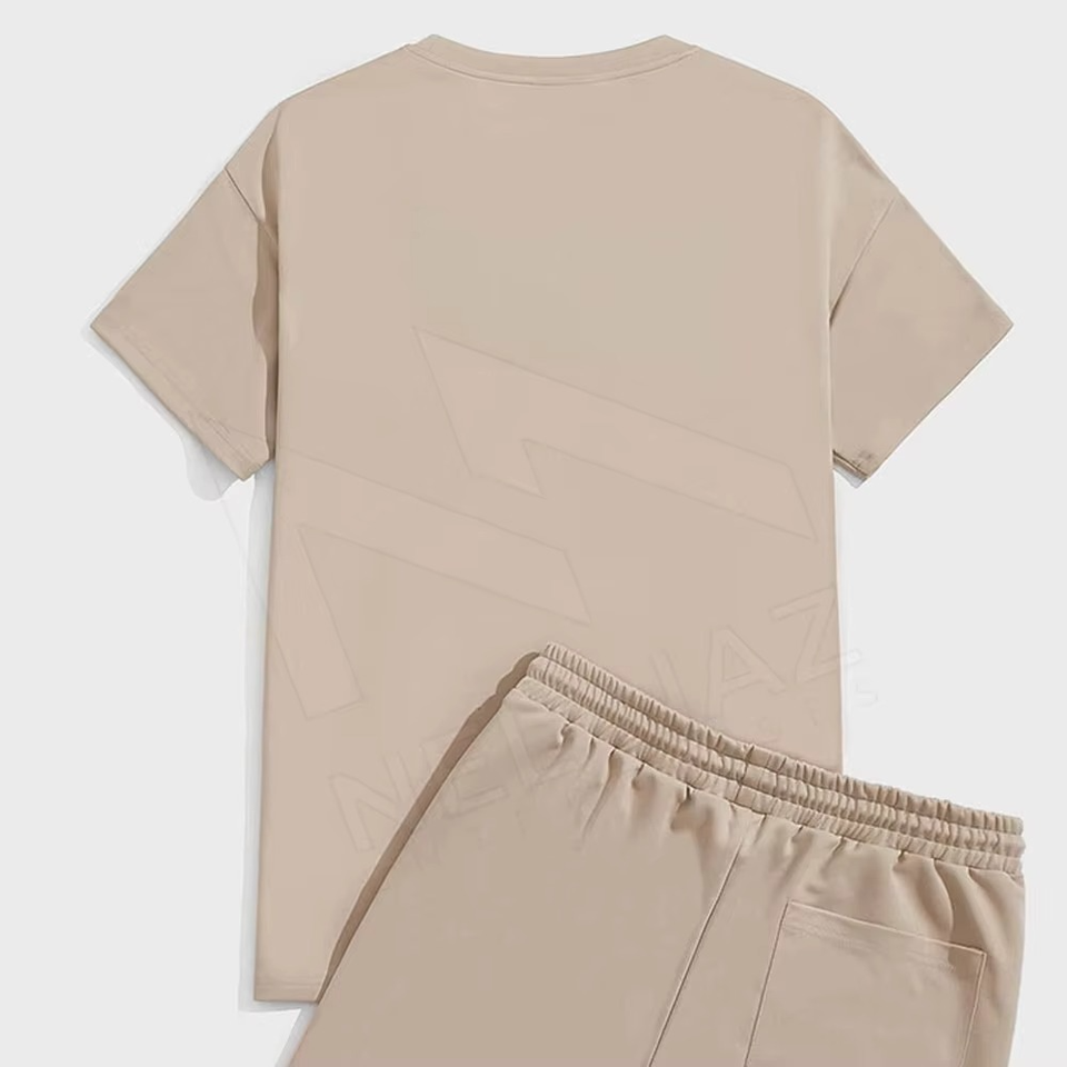 Men's Casual Summer T-Shirt and Shorts Set Breathable Cotton Blend Stylish Knitted Weave