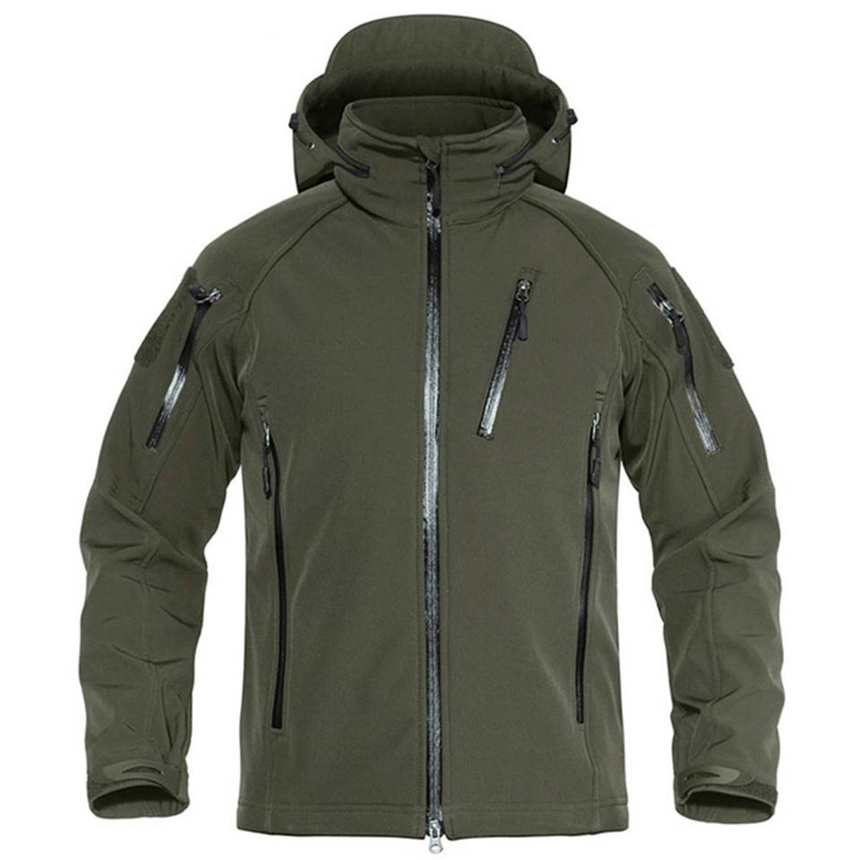 Veste Softshell d'hiver décontractée pour homme, polaire coupe-vent, col montant, capuche coupe-vent, tissu léger, fermeture éclair pour l'extérieur
