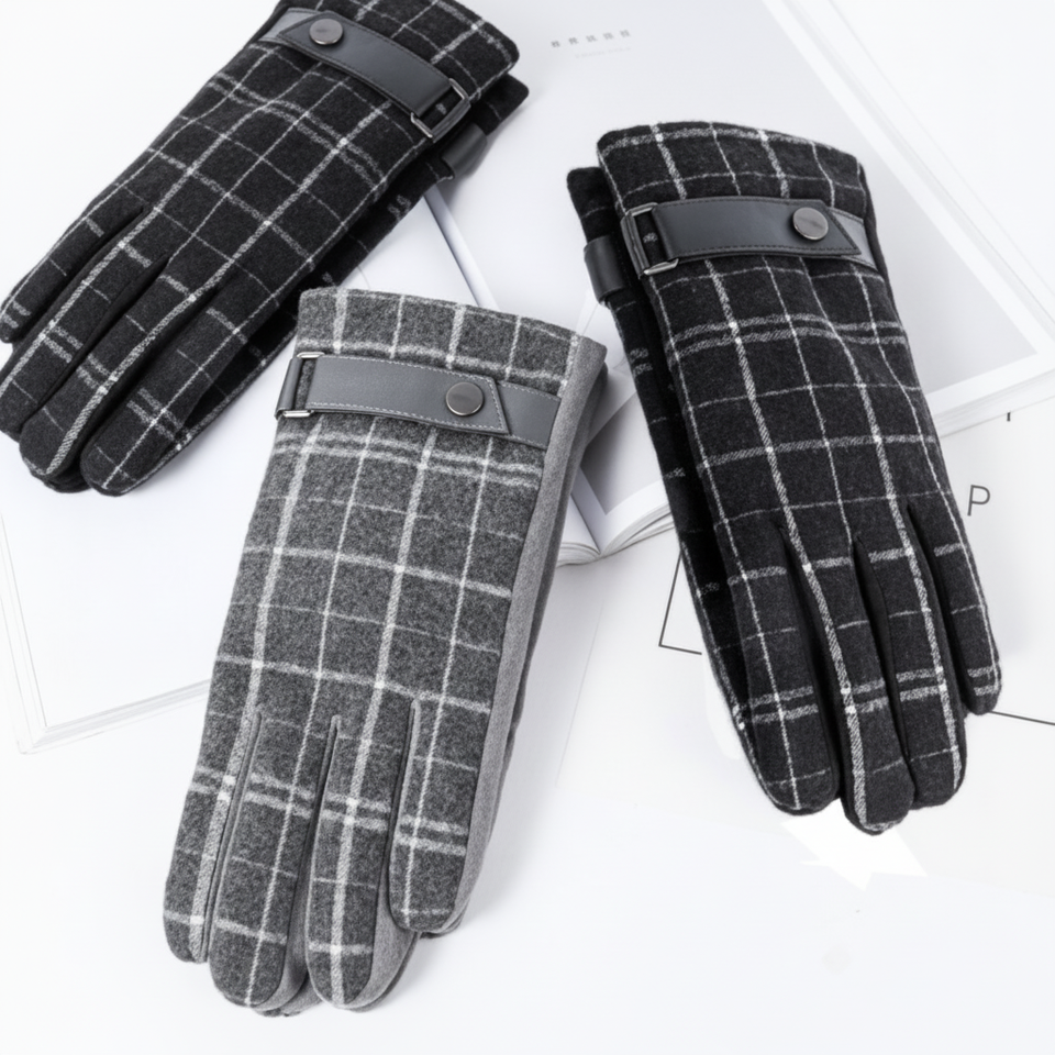 Gants d'hiver en laine à carreaux pour hommes avec protection tactile en daim pour smartphone et protection solaire extérieure pour le travail et les sorties