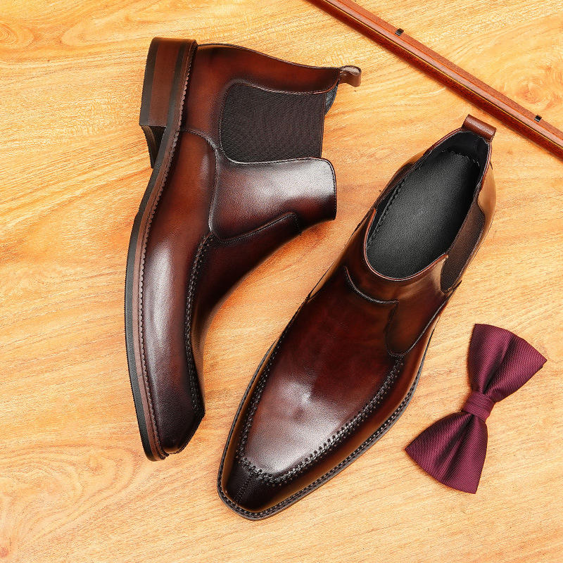 Bottines Chelsea pour hommes, hauteur cheville, cuir véritable, sangles réglables, style business formel, légères
