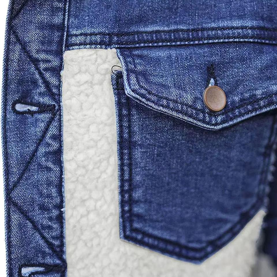 Veste en jean classique pour homme, denim délavé personnalisé avec doublure en sherpa/ Fourrure, veste en jean en gros, veste en fourrure en jean tendance pour homme