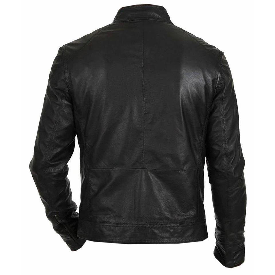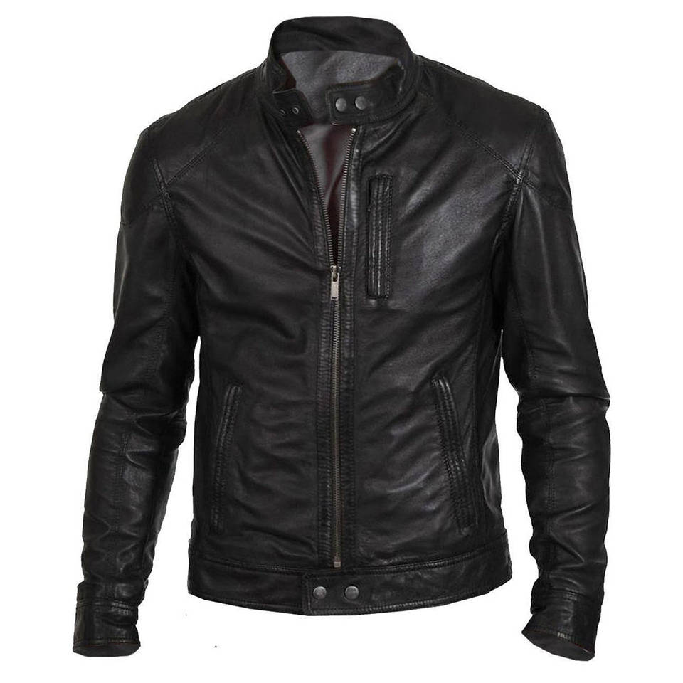 Veste classique de moto en cuir souple pour hommes, nouveau design, coupe ajustée et confortable avec col montant, grande taille enduite