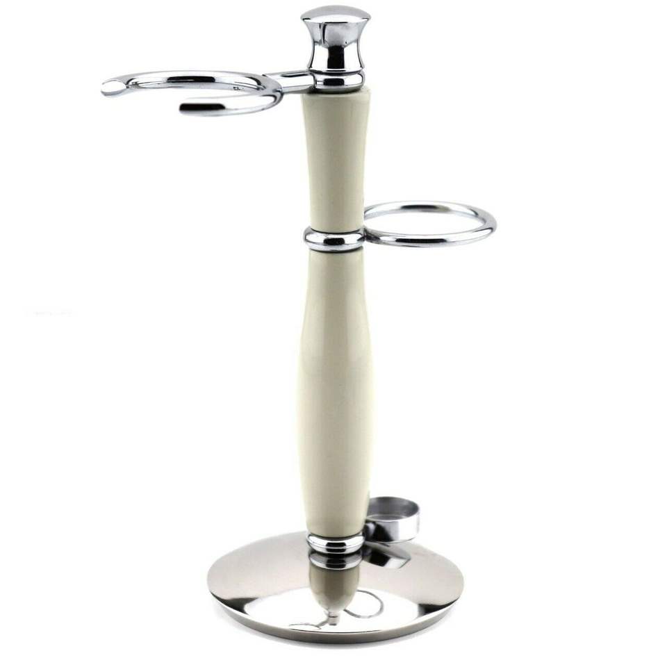 Pinceau de rasage en métal durable classique pour hommes avec support de support blanc et chromé