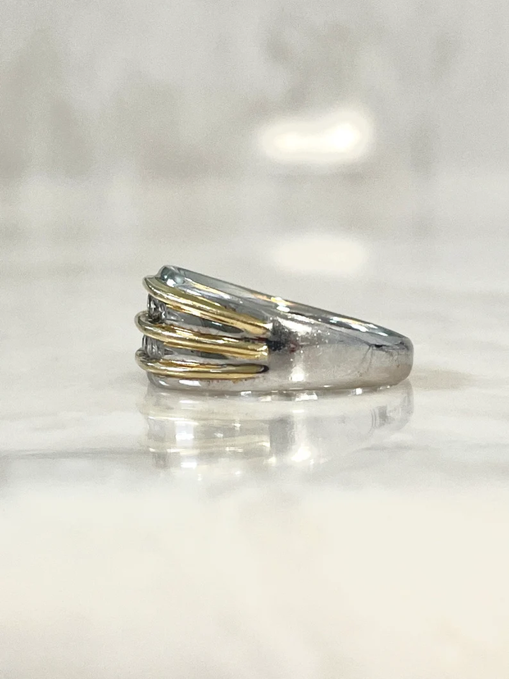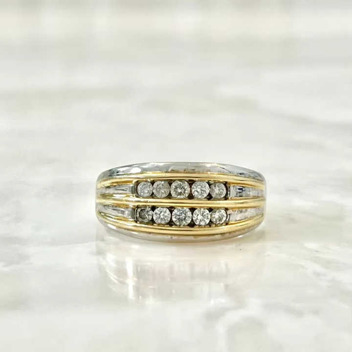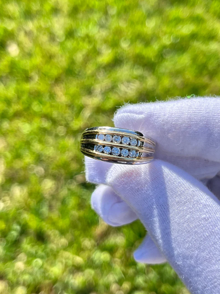 Bague de fiançailles rayée en acier inoxydable de haute qualité pour hommes, style classique, deux tons, 14K, jaune 925