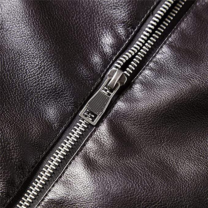 Men's Coated Leather Jacket with Reflective Thick Biker Style Stand Collar