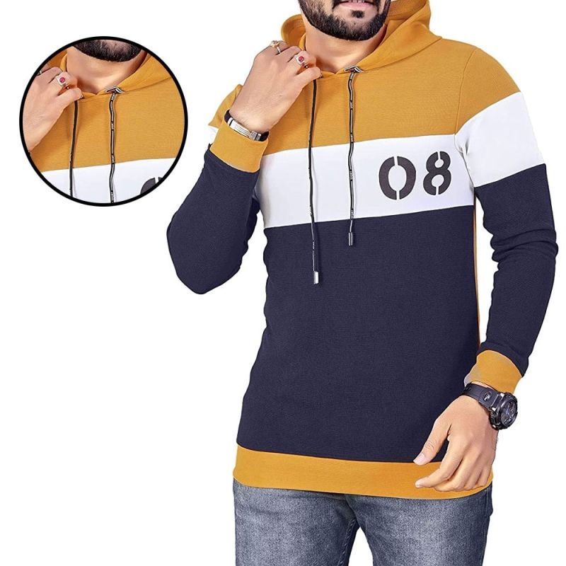 Sweat à capuche en molleton pour homme, color-block moutarde et bleu marine - Sweat-shirt imprimé tendance 08 - Coupe ajustée décontractée avec cordon de serrage